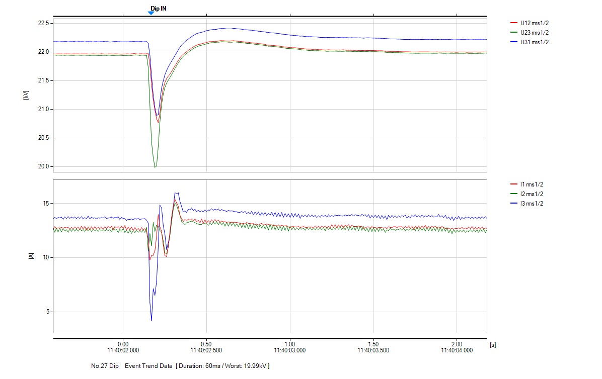 A recent power quality measurement at 22kV recorded a rare occurrence, whereby there were two related events occurring within a minute apart of each other.