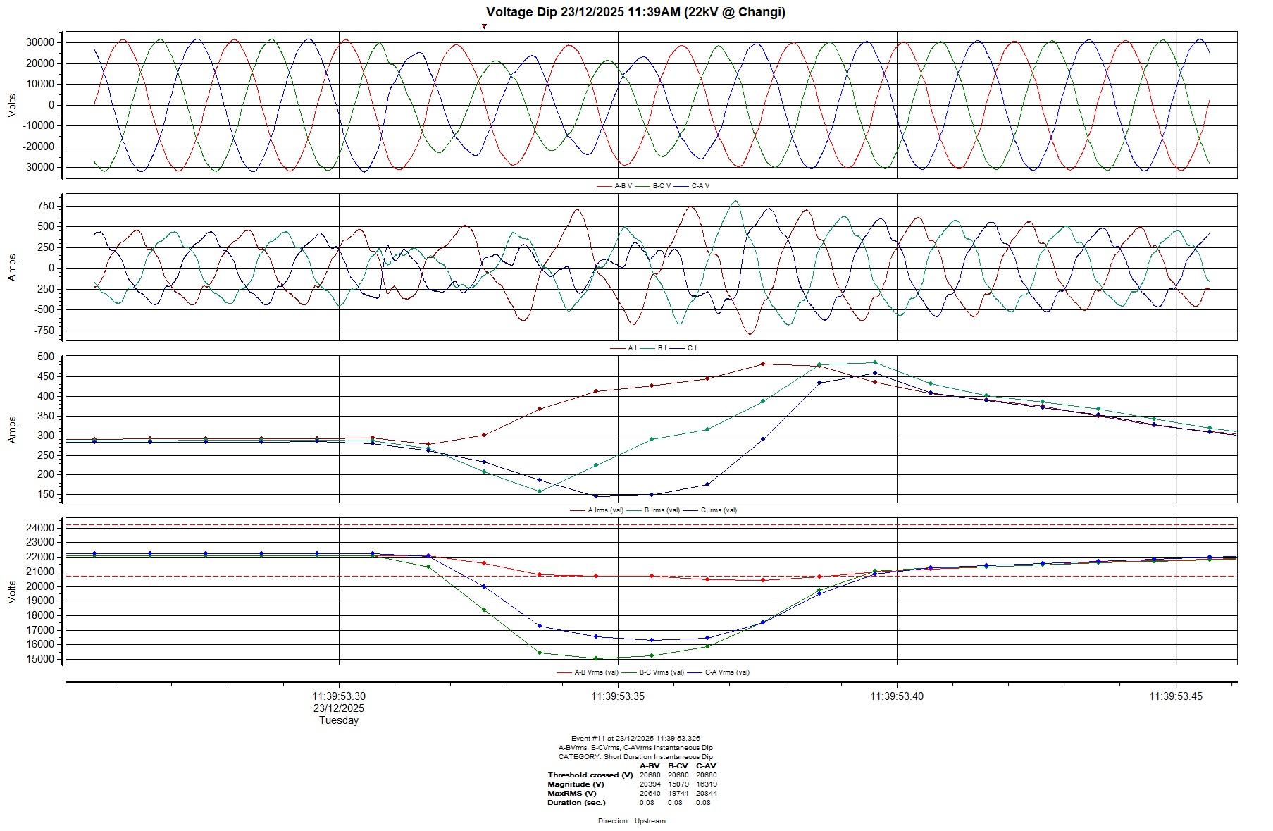 Below were from some our sites in the same affected region at 22kV and LV in Changi and Bedok areas respectively.